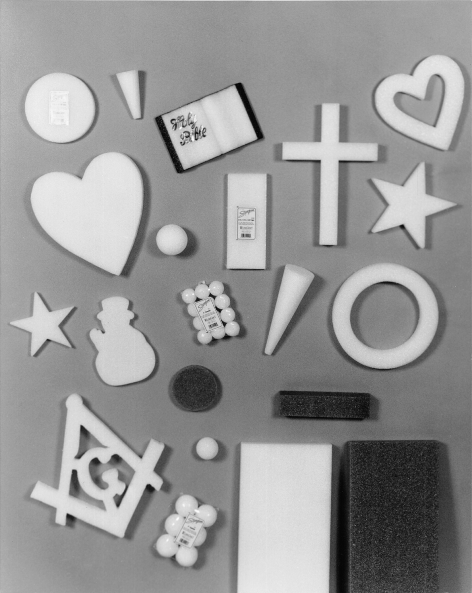 We initially used foam in the aftermath of World War II when Lee realized it provided a stable base for drying and painting floral arrangements. As we transitioned our business model to focus on the craft market, Schoenherr realized this type of foam was also an ideal material to fabricate balls, cones, wreaths and other shapes.