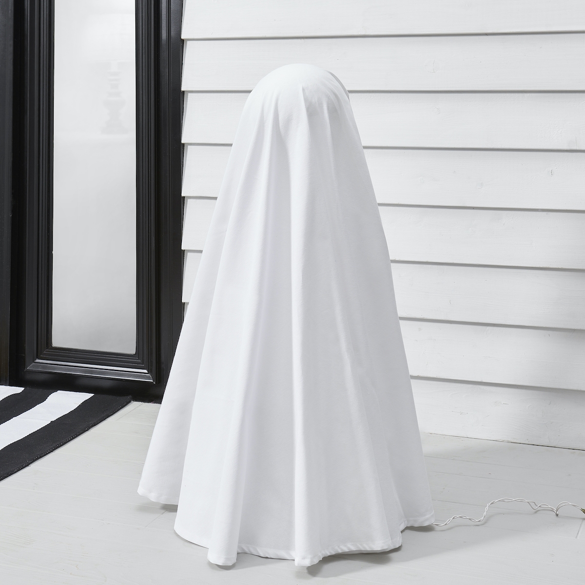 Ghosts not your thing? This process can be customized in countless ways. Try using a black sheet and topping your creation with a pointed hat to make a witch. The same process can also be used during the holidays to create angels and gnomes. A quick trip to your local craft store or scrolling through social media can help provide endless inspiration for your next project.
