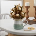 - Evenly space the Setaria grass and the bunny tails throughout the arrangement. Fill in with the baby’s breath for a delicate touch. Lastly, tuck Spanish moss around the top of the mug to conceal the foam.