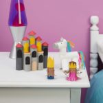 - For the castle, cut a 9” length for the tallest tower and various lengths for shorter towers. Glue them side by side with the shorter ones at the front.