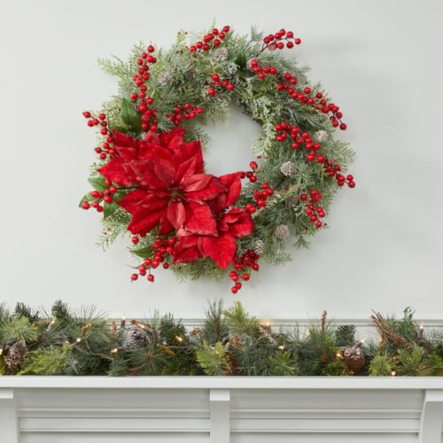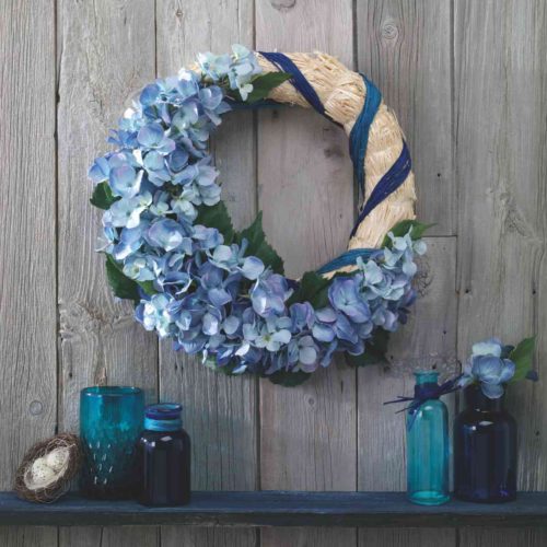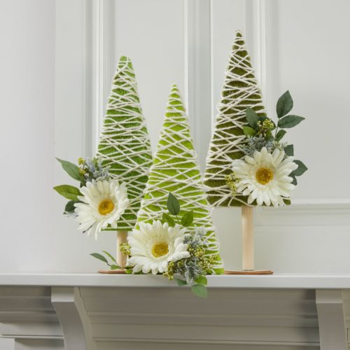 - Pin the star garland at the top of the ball—drape garland in front of the pine branch and around the arrangement to finish.