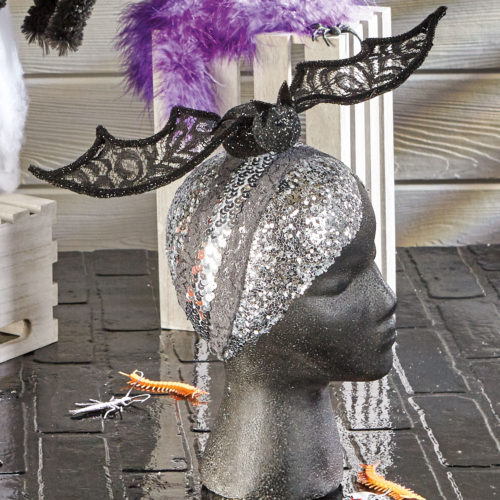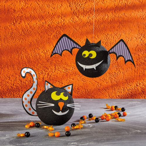 - Glue the 5” head to the 8” body using a low-temp glue gun. Paint the foam black and set aside to dry.