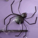 - Twist the ends of two chenille stem legs and glue to secure. Glue the legs into the spider. Glue the eyes and chenille stem pinchers in place to finish.